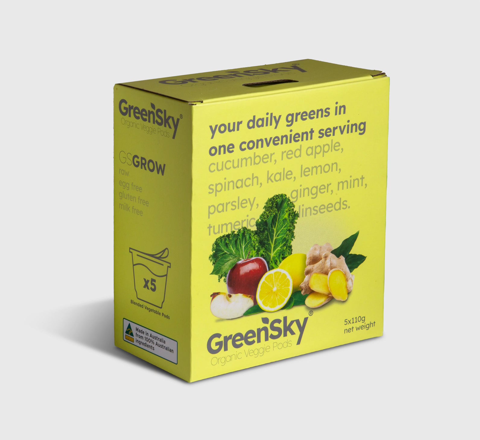🍏 Vibrant & Flavourful – Apple, lemon, and ginger add a refreshing taste, while providing natural sources of vitamins A and C, which play a role in supporting a well-balanced diet. A touch of turmeric and mint completes the blend, making GROW a great way to incorporate variety into your meals.
